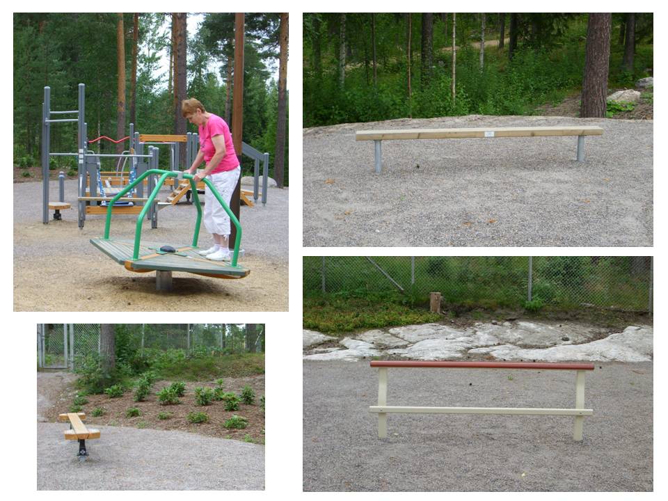 - Puistossa on laaja ja monipuolinen tasapainoa harjoittava laitteisto.