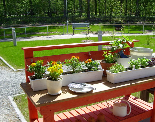 - Esteetön työskentelytaso mahdollistaa puutarhatyöt.