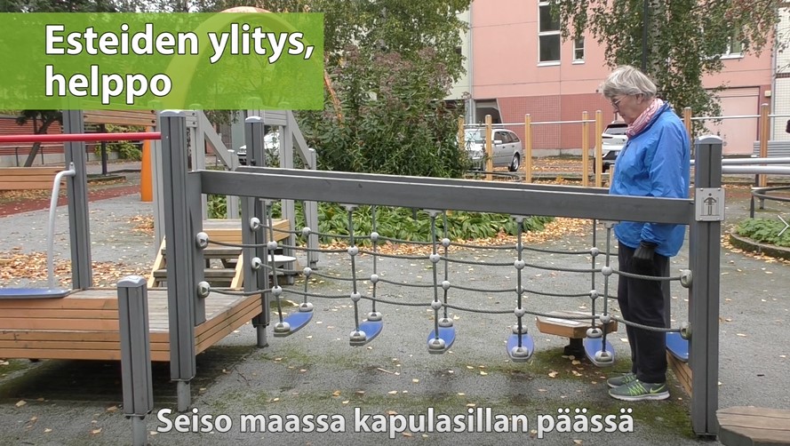Uudet tasapainovideot rohkaisevat kuntoilemaan päiväreittien varrella sijaitsevilla maksuttomilla liikuntalaitteilla. Harjoittelemaan kannattaa kutsua myös kaverin mukaan, jolloin ulkokuntoilu sujuu mukavasti jutustelun lomassa.