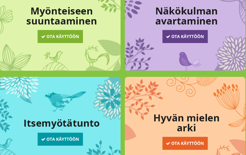 Elämäntaidot esiin -kampanja on julkaissut lähes päivittäin neljän viikon aikana (14.2.-14.3.2018) kuunneltavaa, pohdittavaa ja harjoitteita eri mielen hyvinvoinnin teemoista. Hyödynnä mielen hyvinvoinnin vahvistamisen työkaluja jatkossakin joko itsenäisesti tai järjestösi ryhmätoiminnassa.