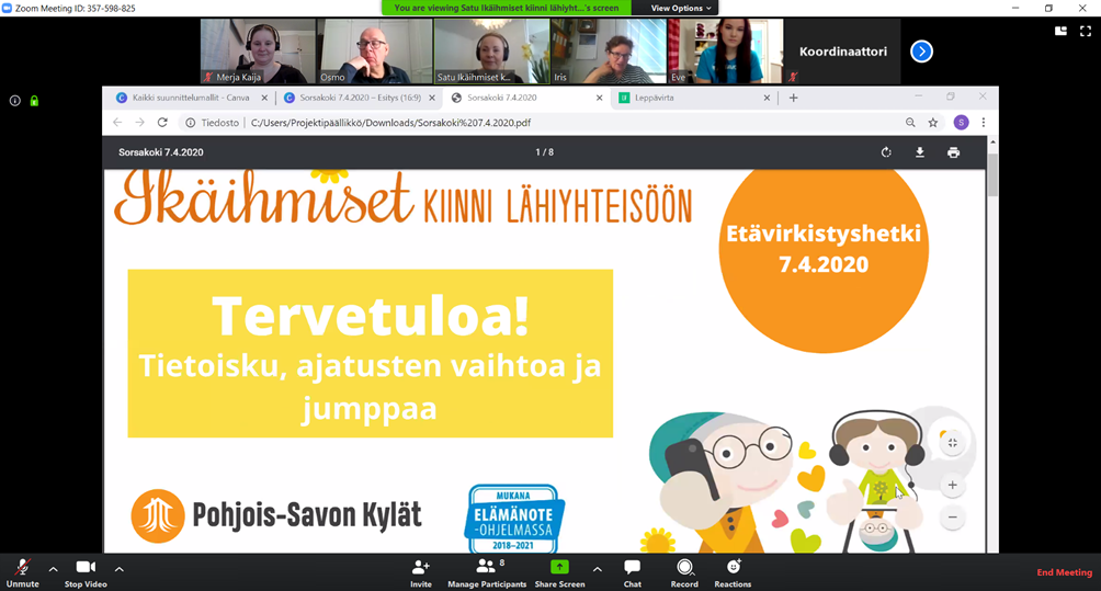 Pohjois-Savon Kylät ry:llä etätoimintaa on ollut jo aiemminkin ja tästä oli suuri apu, kun ikäihmisten toiminta muutettiin etätoiminnaksi todella nopealla aikataululla. Me panostimme siihen, että jokaisella oli etukäteen mahdollista harjoitella etäyhteyttä, niin mikin käyttöä kuin kameran päälle laittamista. Toisilla tämä sujui helposti, toisten kanssa puhuttiin useita puheluita, mutta lopulta yhteys saatiin toimimaan. Opastus tehtiin täysin puhelimen kautta ja meillä opastusta teki kyläpalveluohjaajan sijaisena toiminut kyläkoordinaattori Sari Vainikainen.