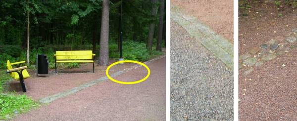 - Liikkumista ohjaa polun laidalla kulkeva 30 cm leveä kivireunus.
