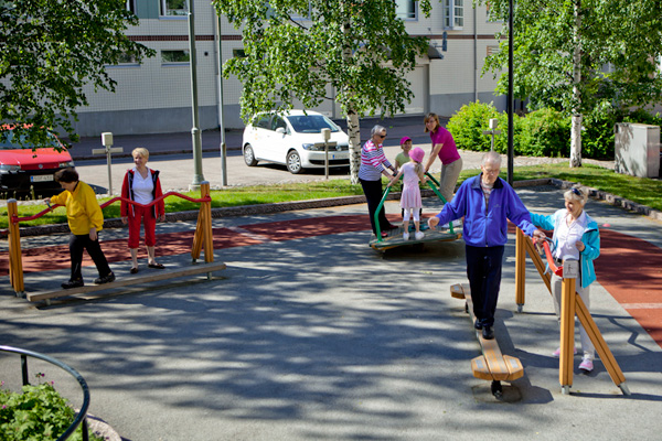 - Puisto tukee ikäihmisten liikkumista ja ehkäisee toimintakyvyn heikkenemistä innostamalla tasapainon ja lihasvoiman harjoittamiseen ja ulkoiluun.
