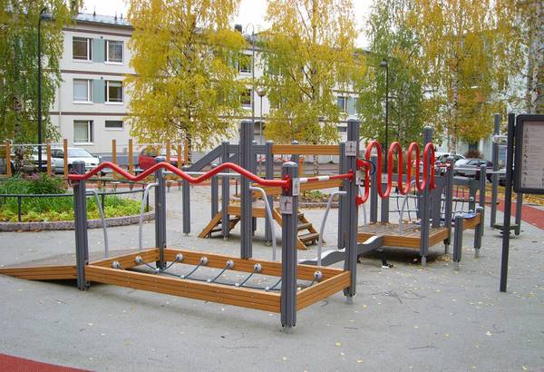 - Taavetinpuiston liikuntalaitteita.